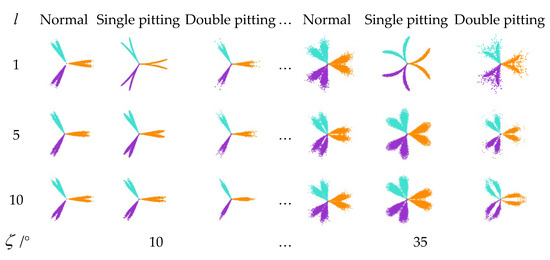 SDP images’ arm of one to three pitting of sensor 1 under different l and ζ.