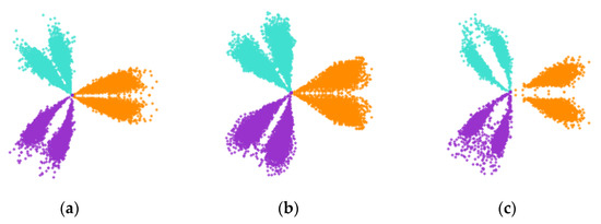 Based on the single-channel fault diagnosis algorithm, a mix SDP image fusing the information of multiple single-channels is proposed in this subsection, 1st measuring point converted to darkorange image, 2nd measuring point converted to turquoise image, and 3rd measuring point converted todarkorchid image, as shown in Figure 7.
