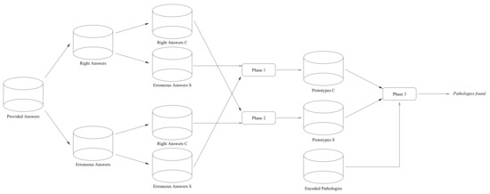 The third phase aims at individuating which encoded pathologies are disguised in the data. In particular, for some pathologies, the most frequent related errors are known. Thus, the goal is to find error patterns shared between data and pathologies and the level of the matching for indicating to the expert which pathologies are expressed and how much they affect the patient answers.