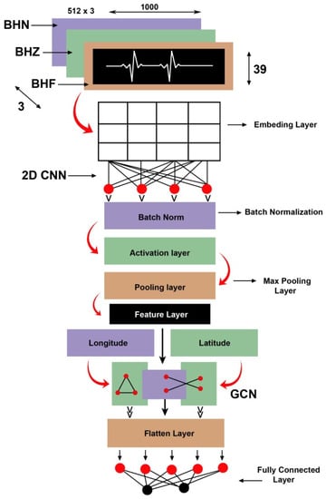 Therefore, in this study, we propose a large-scale deep learning model batch normalization graph convolutional neural network (BNGCNN). The CNN part of the model extracts useful and relevant features from seismic raw waveform data collected from multiple stations and GNN processes spatial information and meta-information about multiple base stations. Batch normalization in CNN improves learning and reduces training time [13,14]. In this way, the proposed model effectively process seismic data obtained from multiple networks and can predict earthquake efficiently and correctly.