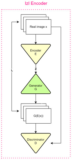From the formula, it can be seen that the discriminator features are related to the loss used in AnoGAN and the discriminator feature utilizes the parameters obtained when learning the GAN. It provides a good mapping of the image and latent spaces using this loss. The parameters learned during [5] WGAN training are fixed during encoder training, and the Figure 6 architecture guides encoder training in both the image and latent space at the same time, selecting the proposed encoder training architecture from the F-AnoGAN model. The discriminator parameters are learned during WGAN training and fixed during encoder training.