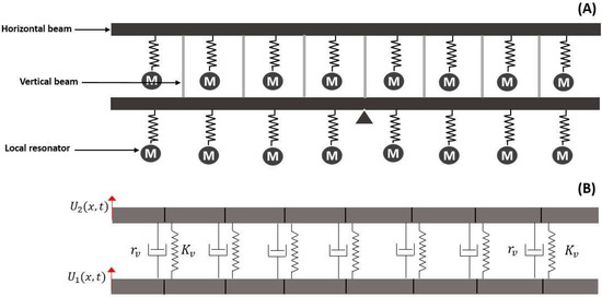 7]. The results of their study showed that a single-beam metamaterial structure with attached local resonators could isolate vibrations at frequencies around the resonant frequency of these local resonators. Building on this effort, Zhou et al. showed that the bandgap of a simple Euler–Bernoulli beam could be shifted to lower frequencies by adding negative stiffness elements to the local resonators [