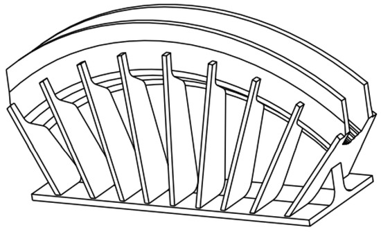 The main cable is the main load-bearing component of a suspension bridge. Whether the actual main cable shape is consistent with the designed shape after the completion of suspension bridge is an important basis for evaluating the construction quality of a suspension bridge [1,2,3]. As shown in Figure 1, the main cable of a suspension bridge is composed of multiple cable strands. During construction, the first erected cable strand is generally referred to as the datum cable. Figure 2 presents a perspective view of the cable saddle. The cable saddle is a component used to provide support and steering for the main cable. The cable saddle base is generally fixed on the main tower. Pre-deflection of the cable saddle means that due to the different stress forms of the suspension bridge under the conditions of the completed bridge and empty cable, in order to ensure the structural safety of the main tower, it is necessary to set the pre-deflection of the cable saddle during the erection of an empty cable, and gradually push the cable saddle to the design position of the completed bridge with the progress of system transformation.