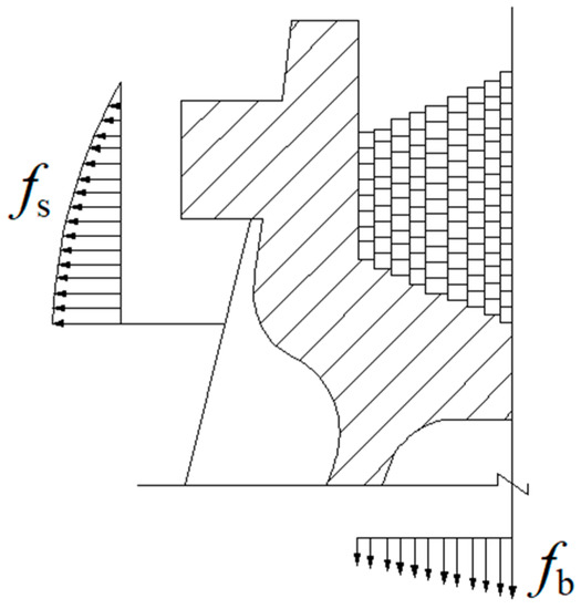 According to Hooke’s law, the friction between the cable saddle and main cable is considered. From Equations (3)–(11), the friction f between main cable and saddle is calculated as