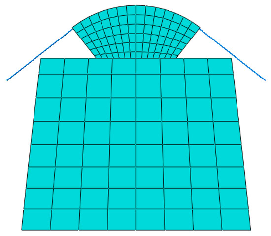 As shown in Figure 10, MIDAS is used to establish the full bridge finite element model of the self-anchored suspension bridge, in which the main cable and sling are modeled by cable element, the rest are modeled by beam element, and the main cable and the main tower are connected by a rigid arm. As shown in Figure 11, ABAQUS was used to establish the local finite element model of the bridge tower, cable saddle and main cable. The bridge tower and cable saddle are simulated by solid elements, and the main cable is simulated by truss elements. The bottom of the tower root is fixed, and the bottom surface of the cable saddle is bound to the tower. The main cable is equivalent to one and the contact relationship with the arc surface of the cable saddle is established. The normal direction is set as hard contact, and the tangential friction coefficient is taken as 0.24. The actual cable end force of the whole bridge model is extracted to act on the local model, and the tangent point coordinates of the main cable when considering friction are obtained. Then, the tangent coordinates are input into the full bridge model to obtain the main cable shape and mid span vertical coordinates under the consideration of friction. The results with and without friction are shown in Table 1.