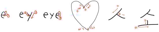 Figure A1, Figure A2 and Figure A3 show the drawing patterns of ‘English’, ‘Freestyle’, and ’Korean’ used in our study.