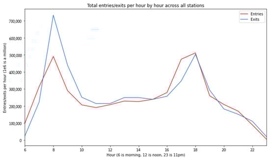 The passenger flow of URT is time series data. The passenger flow at a certain moment is related to both the past historical passenger flow and the future passenger flow. Figure 10 is the hourly average inbound/outbound passenger flow statistics for all stations. It can be seen that there are two passenger flow peaks at 8:00 and 18:00, and the passenger flow before and after the peak is affected. Taking the time granularity of 1 h as an example, the impact of historical passenger flow on the current passenger flow in the short-term passenger flow prediction of URT was analyzed. The calculated Pearson correlation coefficient is shown in Table 2, and it can be seen that the correlation is significant (within the 99% confidence interval).