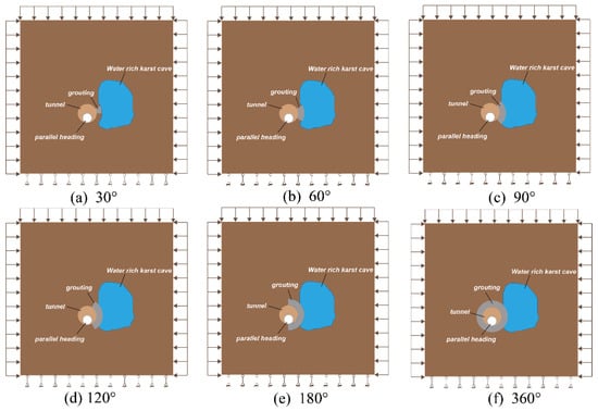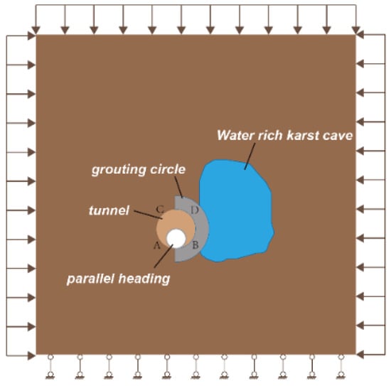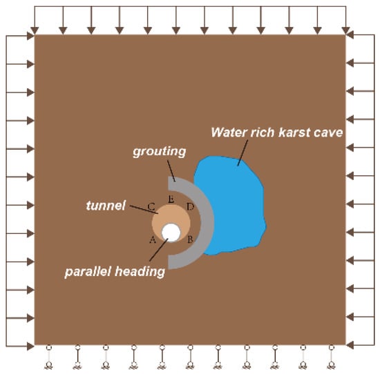 - Zhao, H.; Zhang, F.; Yao, X. Hydromechanical Simulation of Tunnel Excavation in Rock Considering a Nearby Karst Cave. Math. Probl. Eng. 2021, 2021, 7875725. [Google Scholar] [CrossRef]