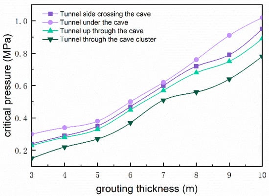 3. Analysis of the Safety Thickness of Composite Surrounding Rock in Tunnels Crossing High-Pressure Karst Caves