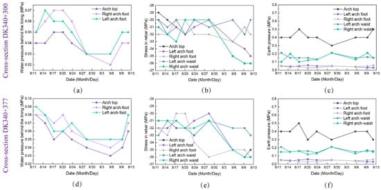 - Liu, Y.; Feng, Y.; Xu, M.; Zhang, Y.; Long, H.; Zhu, H. Effect of an incremental change in external water pressure on tunnel lining: A case study from the Tongxi karst tunnel. Nat. Hazards 2019, 98, 343–377. [Google Scholar] [CrossRef]