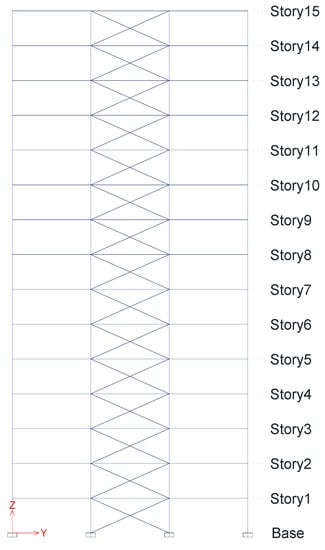 This research is presented in two main parts (i.e., Section 3 and Section 4). Section 3 presents the linear and nonlinear numerical analysis on some flexural frames whose members (i.e., beams and columns) are joined by implementing a new type of semi-rigid connection (modified RBS connection). To this end, first, three types of three-dimensional steel flexural structures with simple connections and with 3, 10, and 15 floors (Figure 1, Figure 2, Figure 3 and Figure 4) are modeled in ETABS 2016 software in which preliminary dimensions of the frame members (i.e., beams and columns) are determined by performing pre-design analysis. Then, some frames of 3D models in built in ETABS are selected and transferred to the OpenSees ver. 2.5 software in which the simple connections are replaced with the semi-rigid welded steel connections. In this step, the seismic responses of semi-rigid welded steel connections are investigated. To this end, the selected frame systems are subjected to both the static and reciprocating loads, and using the effects of 15 different earthquakes such as Northridge (1994), Kobe (1995), Chichi (1999), Bam (2003), Tabas (1978), and so on, the seismic responses of connection models are investigated. The connections are modeled as a series of nonlinear moment-rotational springs. A three-line curve is adopted to represent the constitutive behavior of the springs. The characteristics of this constitutive curve (in other words, the slopes of a three-line curve that represents the nonlinear stiffness of the modeled springs) are extracted by using modified Ibarra–Krawinkler deterioration relationships. At end of this section, the obtained results for the seismic response of the studied connection are discussed and a comparison is made with a previously published work. Finally, in part 2 (Section 4), the effects of increasing failure in steel towers are evaluated by using a performance-based design method. To this end, first, the variation of the maximum relative drift of the floors versus maximum ground acceleration is obtained, based on which the fragility curves of the structures for a collapse level (CP) are determined.
