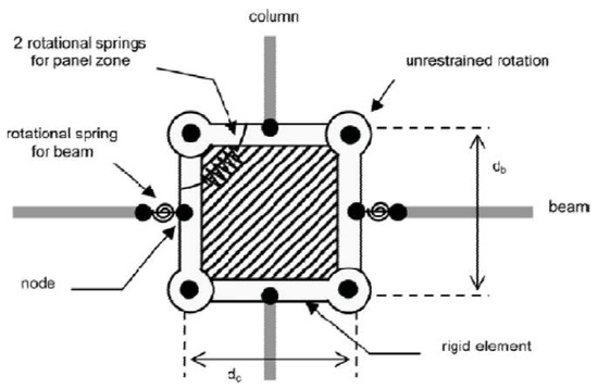 Schematic view of the Panel-Zone element used in modeling simple connections before the Northridge earthquake.