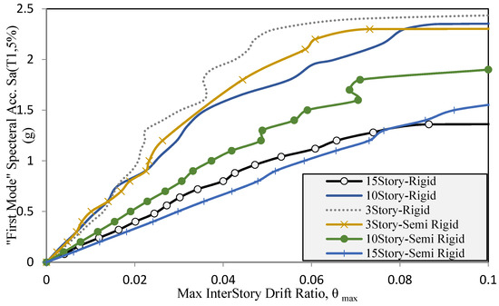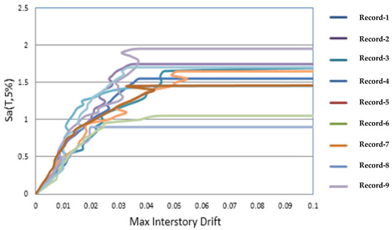 - The ductility of structures decreased with decreasing the number of structural layers. The curves obtained by incremental nonlinear dynamic analysis (IDA) became horizontal at a lower seismic intensity level, which indicates that with increasing ductility of structures the higher drifts can be achieved in structures at the same seismic level, which witnessed better behavior of the structures.