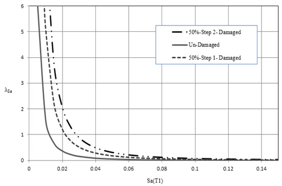In this equation (Collapse), λ represents the functions of the mean annual incidence rate (MAF) of transmittance for IM, in which the quantity within the absolute value, the risk gradient of IM and the probability of failure or the same value is a function of fragility. Using high seismic hazard diagrams and fragility and numerical integration diagrams, Equation (18) is used. The values related to the mean annual incidence rate (MAF) of the IO and CP limit states for the structures are shown in the Table 7. These values are very useful as quantities that reflect the probabilistic capacity of the entire structure based on earthquake uncertainties. These values can be used as a criterion for measuring the structural reliability of the buildings in comparison with other structures or they can be used in the regulations related to the design of buildings [16].