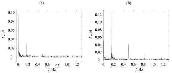 Discrete Fourier transform of the side force determined from the experiment: (a) for model A and (b) for model B.