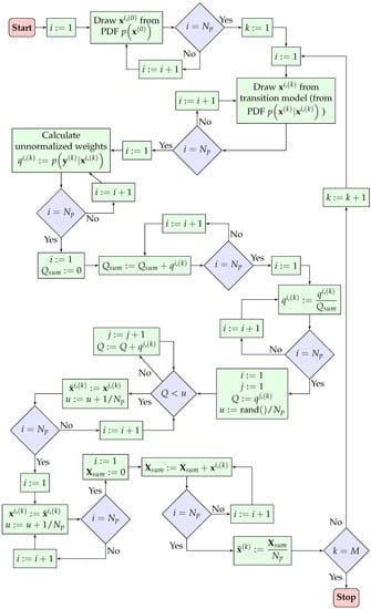 The basis of the particle filter is the recursive Bayesian filter algorithm [28,29]