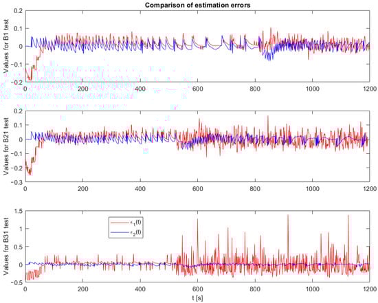 It should be noted that the proposed system is autonomous. The change of state is caused only by the presence of system noise, and the parameters to be adjusted are the variances of the noises. The best estimation (based on the graphs) was observed for the parameters , , and .