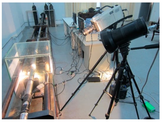 The SHPB device was used to conduct dynamic Brazilian splitting tests on sandstone specimens. The Memrecam H-3E high-speed camera produced by NAC Japan was used, and a xenon lamp was used to supplement the light to complete the high-speed video of the sandstone dynamic splitting test. The high-speed camera and the supporting equipment are shown in Figure 11.