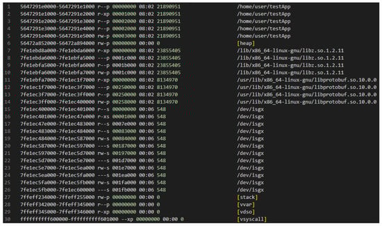 Identifying the Enclave’s Base Address. To find out the base address of the Enclave, we make use of the /proc/pid/maps file. This file contains the address information of the /dev/isgx file, which has the device name of the SGX kernel module []. The address is identical to the base address of the loaded enclave in the target process.