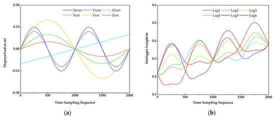 Continuous motion of the platform. (a) Motion of six degrees. (b) Length of six outriggers.