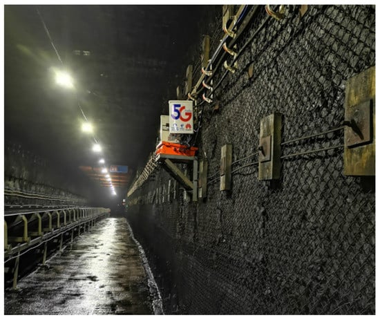 In a coal mine in northwestern China, the full deployment of 5G networking equipment and the underground coverage of 5G signals have been achieved, which provide conditions for the verification of interference-suppression technology. The deployment of the experimental tunnel base station is shown in Figure 5.