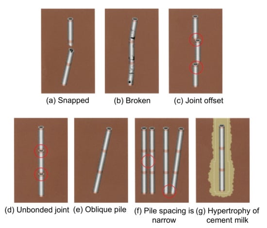 If the existing pile remains in the soil, the remaining piles will become obstacles in the soil, causing delays in the construction period of the new pile at the site and the inferior construction of this new pile. In other words, underground residue from an existing pile has a negative effect on the installation of a new pile. An existing pile remaining in the soil is often related to the method that is used to pull out the existing pile. It is possible that the existing pile will be destroyed in the pulling-out process and broken piles will be left in the soil. At the same time, there are many existing piles buried in an unhealthy state, as shown in Figure 1. In addition, depending on the type of existing pile, there are places along the pile structure that can easily become separated, which may cause partial or full existing piles to remain underground.