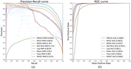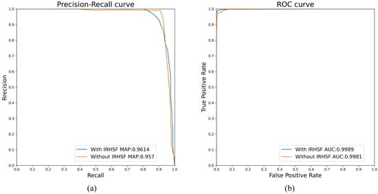 Influence of IRHSF on AUC and mAP values. (a) PR curve, (b) ROC curve.