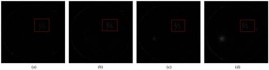 Influence of patch size on detection results in the P-RPCA method for the image pair with small lesions. (a) Patch size = 50; (b) patch size = 100; (c) patch size = 200; and (d) patch size = 300.