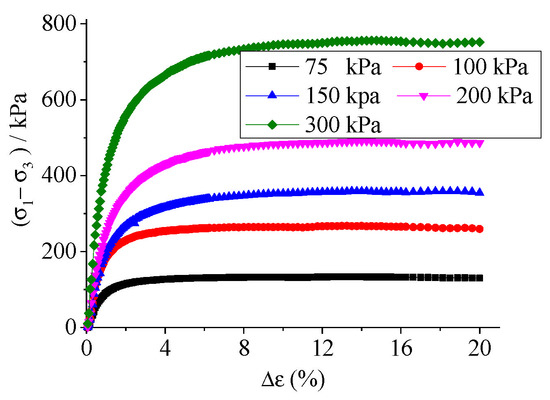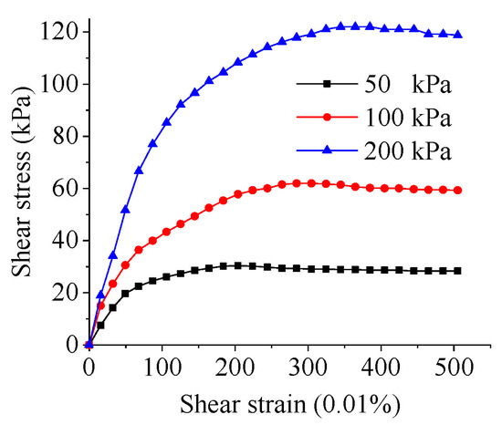 The stress–strain relation at different confining pressure.