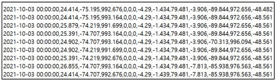 In the established experimental environment, the data collected from the acceleration sensor were stored on the server in the form of txt and are showed in the following Figure 5.