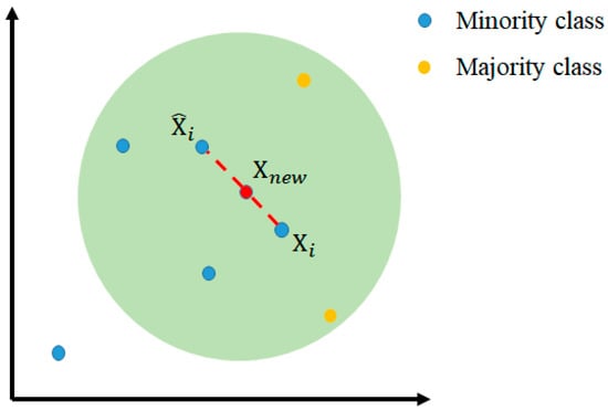 where is a random factor with a value in the interval of [0, 1] and is the minority class example selected (see Figure 8).