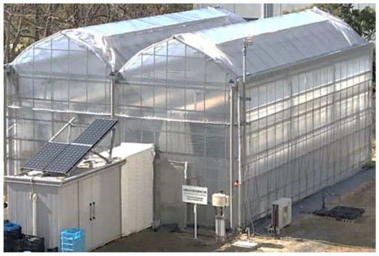 This study was conducted in a vinyl greenhouse of 120 m2 (length: 12 m; width: 10 m; height: 6.03 m) located at Toyohashi University of Technology, Japan (Figure 3). The greenhouse was equipped with air conditioning, air circulators, roof and side vents, water and nutrient solution drip-irrigation system, and a perforated tube of airflow system placed above the bed of plants shelves. Additionally, the greenhouse’s roof and side vents were covered with insect-proof nets.