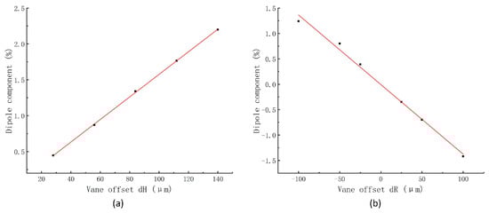 Dipole field components caused by structural errors. (a) Dipole field component caused by vane offset dH, (b) Dipole field component caused by vane offset dR.