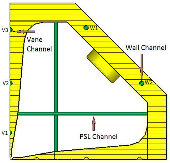 where v is the water’s velocity,  = 0.001 Ns/m is the viscosity of water,  = 4.2 kJ/kg is the heat capacity of water,  = 998 kg/m is the density of water, and  and  are the Reynolds number and the Prandtl number, respectively. Assuming that the velocity of water is 2.3 m/s, according to the Dittus–Boelter correlation, the heat transfer coefficient in the PSLs and cavity are calculated to be 9682 and 9259 W/mK.