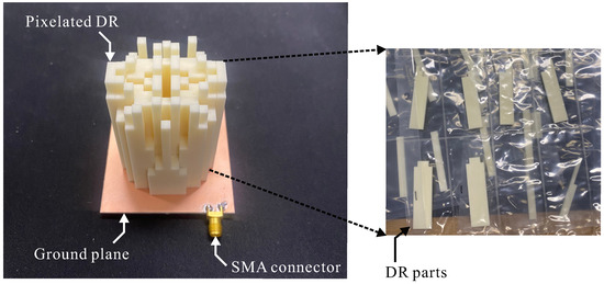 Figure 7. A photograph of the fabricated antenna and DR parts.
