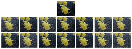 Rain14000 dataset is a new open-source dataset published in 2017, which contains a total of 14,000 images. The training set of 12,600 images is a total of 14 synthetic rain images with different raindrop densities and different tilts corresponding to 900 real clear images, respectively. Correspondingly, the test set consisted of 1400 images, or 14 synthetic rain images of varying degrees of clarity corresponding to 100 real images. An example of the Rain14000 dataset is shown in Figure 5, which shows rain-free images and 14 corresponding synthetic rain images.