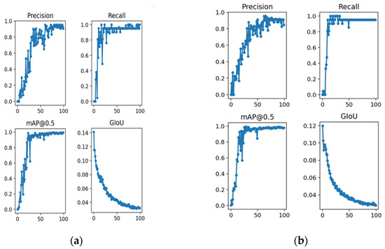 Comparison of the training results of the rainy image and the processed image in the ship detection network. (a) Training result for rainy image. (b) Training result for deraining image.