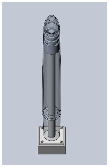 This section displays the suggested design geometry and structure. While still linked to the bottom rod, the outer cylinder should be mostly stiff and able to vibrate. The top of the cylinder is unbound, and the amplitude of its oscillations is the largest. The structure comprises polymers reinforced with carbon and/or glass fiber, commonly utilized in wind turbine blades. The mast is supported at the top of the rod, while the bottom is firmly attached to the ground. It is made of a carbon fiber–reinforced polymer with excellent fatigue resistance and minimal energy leakage when oscillating. Naturally, the design of such a wind turbine is much different from that of a traditional turbine. The energy collecting design shown in Figure 1 is proposed in place of the typical tower, nacelle, and blades.