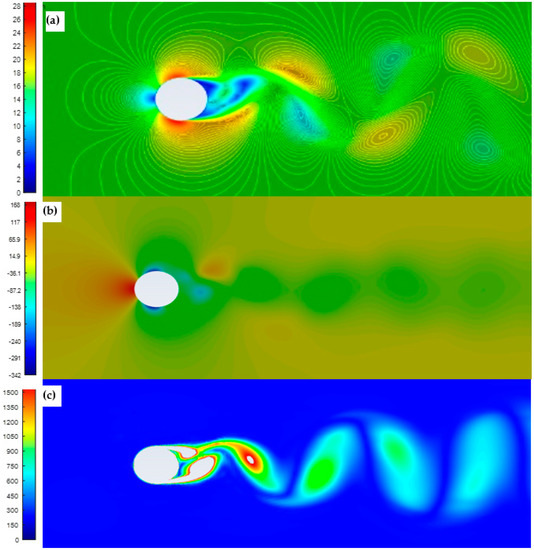 Also, the Strouhal number (), which is mandatory for finding vortex shedding frequency, can be calculated using Equation (4).