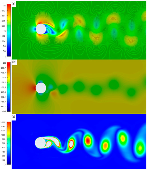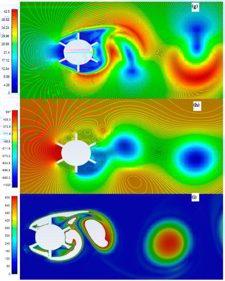 CFD simulations were carried out on the mast using its actual dimensions, including mast height, length, and diameter of the cylinder, and on the proposed design of both shapes of simple and complex cylinder geometries. The results showed that high pressure is created even at low wind speed, producing higher lift force and more vibrations. The intensity of vertices at low wind speed for complex shape design grows more extensive and even better at wind speeds equal to 15 and 20 m/s, as shown in Figure 6. A considerable amount of power can be harvested from the complex shape design at wind speeds as low as 5–20 m/s.