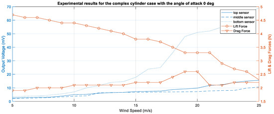 Experimental results for the complex cylinder case with the angle of attack at 0 deg.