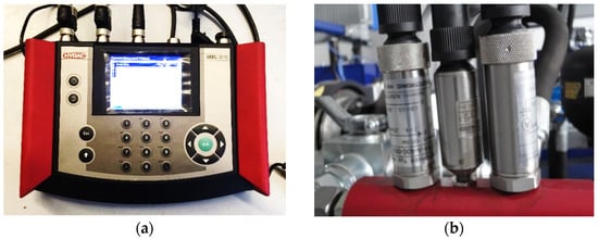 (a) Measuring device HMG 3010; (b) flow, pressure, and temperature sensors for HMG measuring device.