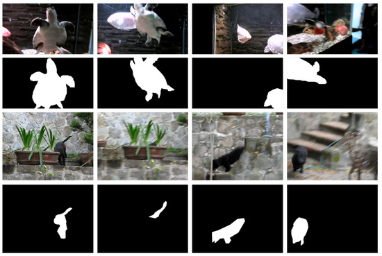 - Perazzi, F.; Pont-Tuset, J.; McWilliams, B.; Van Gool, L.; Gross, M.; Sorkine-Hornung, A. A Benchmark Dataset and Evaluation Methodology for Video Object Segmentation. In Proceedings of the IEEE Conference on Computer Vision and Pattern Recognition, Las Vegas, NV, USA, 27–30 June 2016. [Google Scholar]