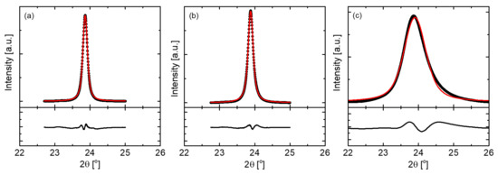 - Balzar, D. Voight Function Model in Diffraction-Line Broadening Analysis. In Defect and Microstructure Analysis by Diffraction; International Union of Crystallography Monographs on Crystallography; Snyder, R.L., Fiala, J., Bunge, H.J., Eds.; Oxford Science Publications: Oxford, UK, 1999; Chapter 7; ISBN 978-0-19-850189-3. [Google Scholar]