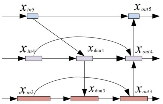 Figure 7. YOLOXFPN.To ensure that the divisor is not zero, . Before adding fusion, it is necessary to ensure that the fused feature maps have the same size. Therefore, is necessary to resize the feature maps, including adjusting the number of channels and the size of the feature maps.
