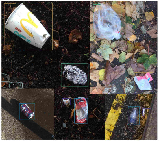 In order to verify the generalization ability of the improved model YOLOX-S, the base model YOLOX-S and the model YOLOX-S were trained on datasets in two different scenarios. Table 6 and Table 7 respectively show the experimental results of the two models on different data sets. Considering the uneven distribution of objects in the TACO dataset, only the garbage objects with a sample size greater than 200 are selected for the experiments. In the experiment, considering the problem of uneven object distribution in the TACO dataset, only garbage objects with a sample number of more than 200 were selected for the experiment, with a total of eight categories and 1086 images, including clear plastic bottle, plastic bottle cap, drink can, other plastic, plastic film, other plastic wrapper, unlabeled litter, and cigarette. The TACO dataset was divided into a training set and a verification set at a 9:1 ratio with no test set, and the experimental image size was 640 × 640. The NEU-CLS dataset was divided into a training set and a test set according to a 9:1 ratio; the separated training set was divided at a 9:1 ratio into a training set and a validation set, and the experimental image size was 320 × 320.