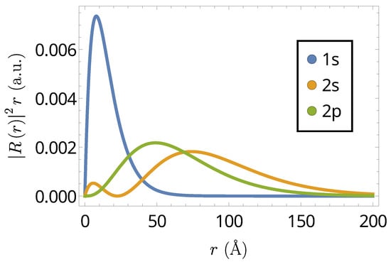 Additionally, we also have , where we consider a simple variational ansatz [,] based on the eigenfunctions of the two-dimensional hydrogen atom [,] and given by