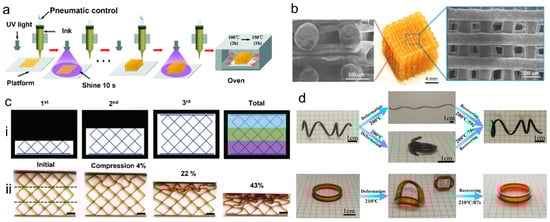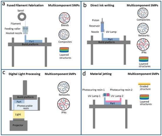 - Garces, I.T.; Ayranci, C. Advances in additive manufacturing of shape memory polymer composites. Rapid Prototyp. J. 2021, 27, 379–398. [Google Scholar] [CrossRef]