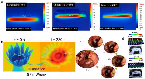 - Hua, D.; Zhang, X.; Ji, Z.; Yan, C.; Yu, B.; Li, Y.; Wang, X.; Zhou, F. 3D printing of shape changing composites for constructing flexible paper-based photothermal bilayer actuators. J. Mater. Chem. C 2018, 6, 2123–2131. [Google Scholar] [CrossRef]