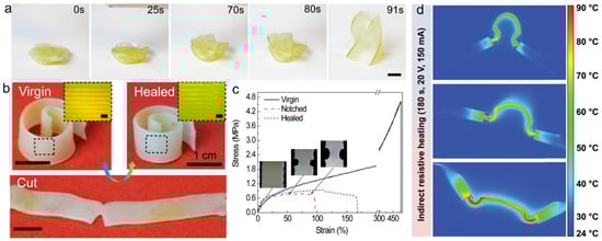 - Kuang, X.; Chen, K.; Dunn, C.K.; Wu, J.; Li, V.C.F.; Qi, H.J. 3D Printing of Highly Stretchable, Shape-Memory, and Self-Healing Elastomer toward Novel 4D Printing. ACS Appl. Mater. Interfaces 2018, 10, 7381–7388. [Google Scholar] [CrossRef] [PubMed]